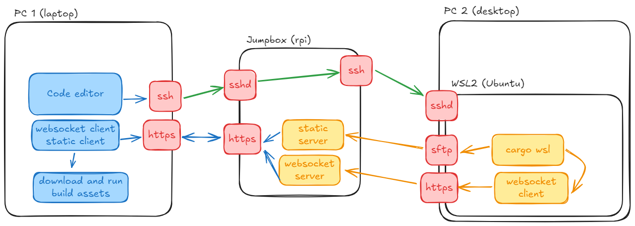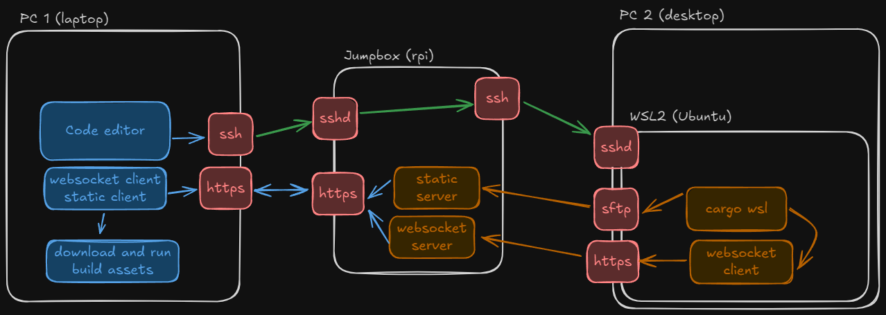 Spent the last two days setting up SSH support for my bevy build system. Now I can build with my Ryzen 9 PC anywhere over a WAN. This was quite a challenge and I learned a lot along the way!